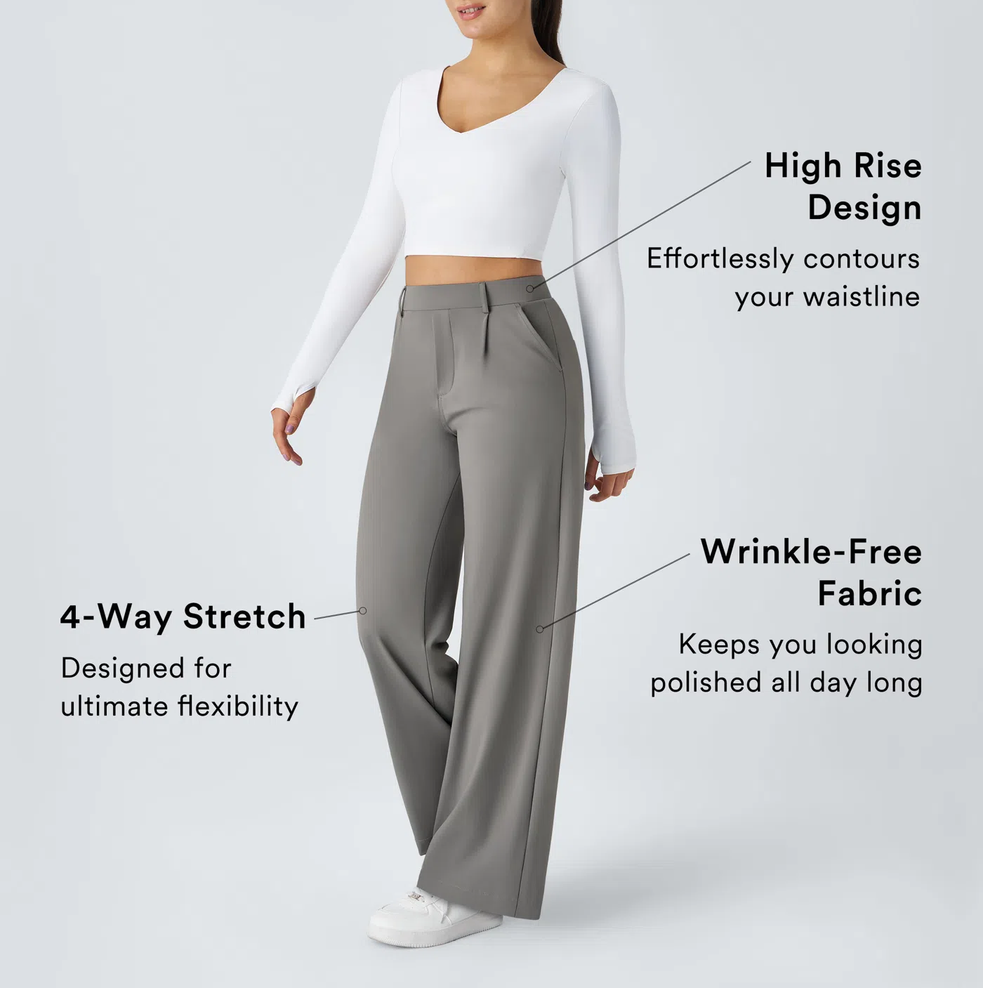 ⏰SEPTEMBER HOT-SALE!High Waisted Side Pocket Straight Leg Work Pants